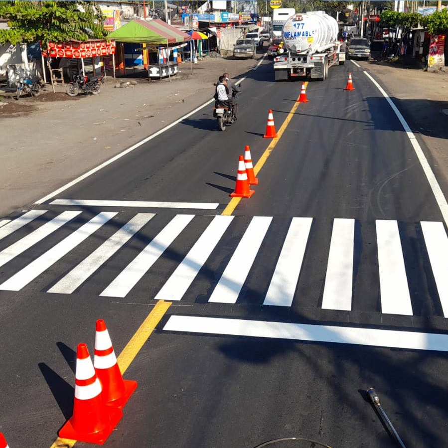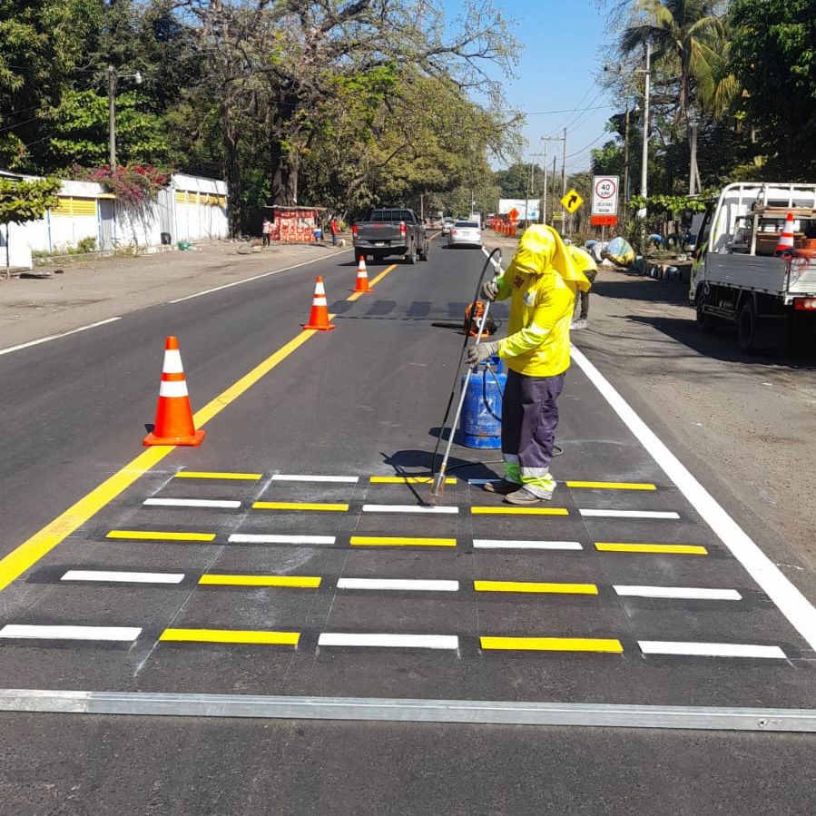 La pintura termoplástica preformada es una opción avanzada para la señalización vial, diseñada para ofrecer una visibilidad y durabilidad excepcionales. Este tipo de pintura es fabricada en forma de láminas que se aplican directamente sobre el pavimento, garantizando una alta resistencia al desgaste y a las condiciones climáticas extremas.
